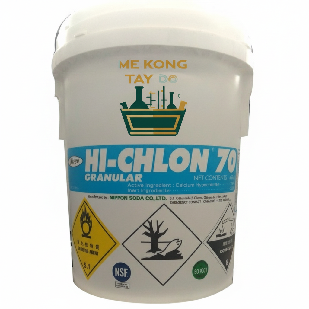 Chlorine chứa một hàm lượng cao chất Clo được cô đặc 70%, dùng xử lý nước hồ bơi, diệt khuẩn nước ao nuôi tôm – cá trước khi nuôi, xử lý nước cấp, v.v…